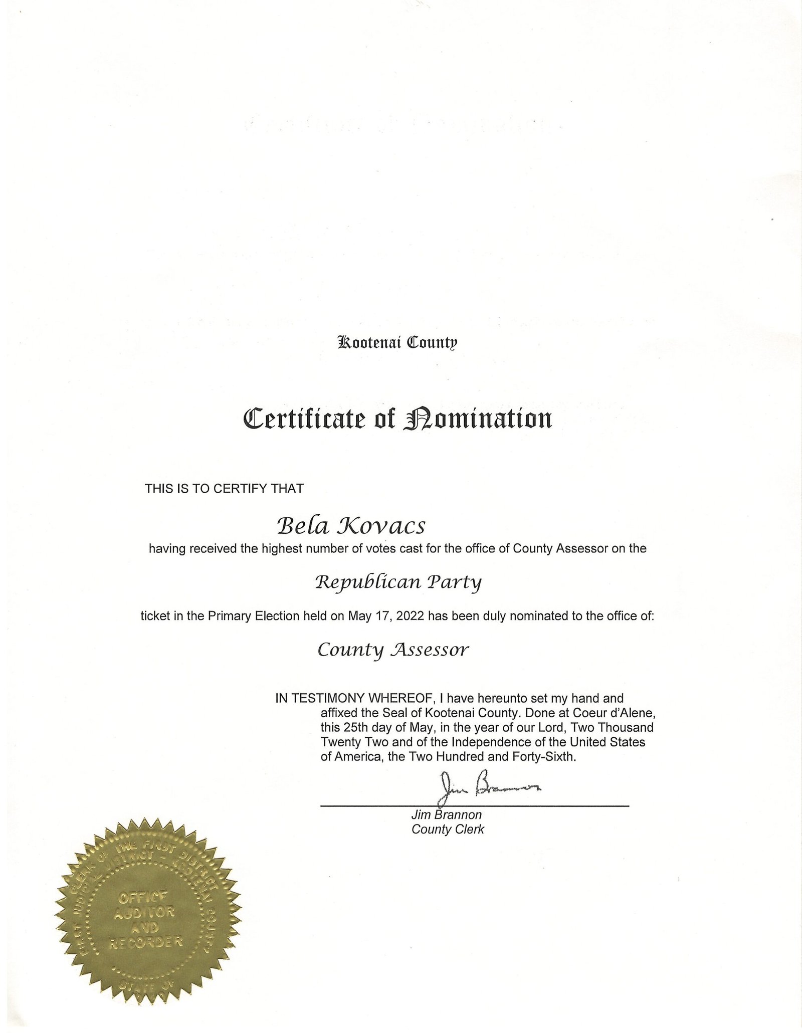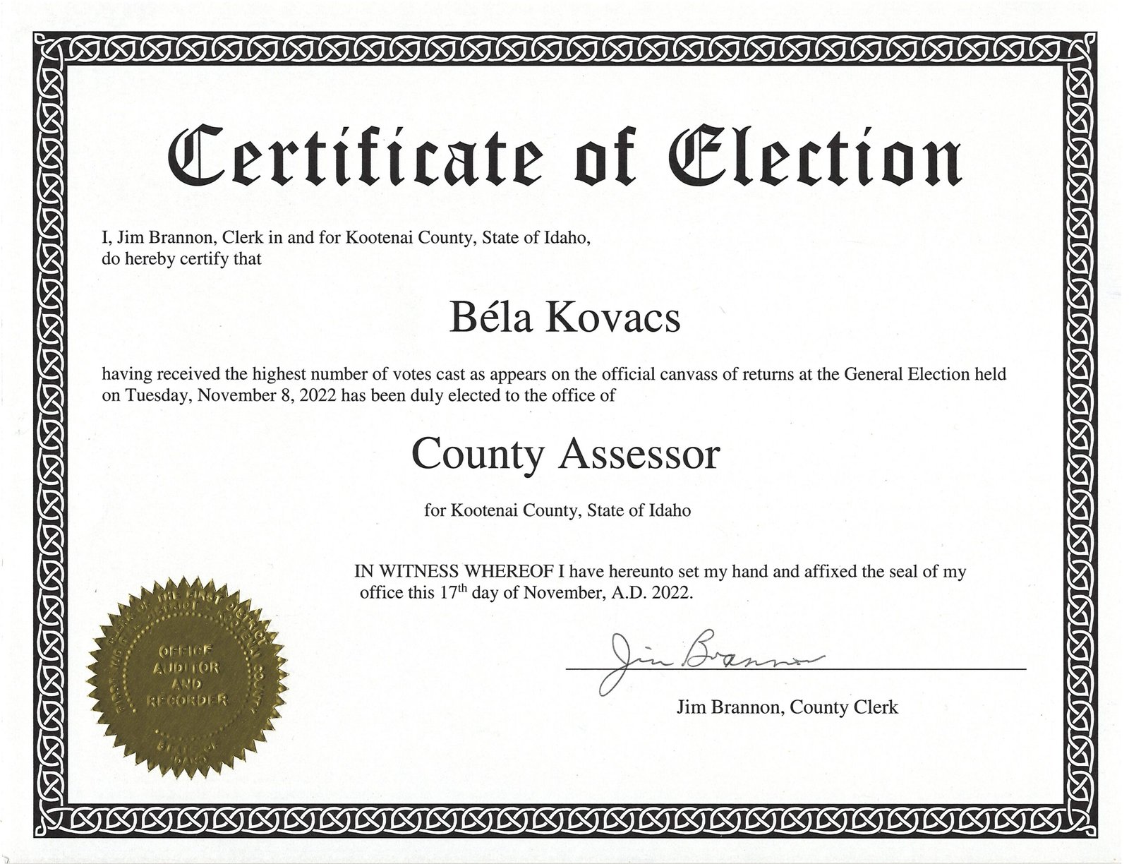 As Kootenai County Assessor, my responsibility is to ensure property assessments are accurate, fair, and applied consistently under Idaho law. This role requires deep technical knowledge, professional certification, and a commitment to transparency. My experience is grounded in decades of appraisal work and public service, not campaign rhetoric.